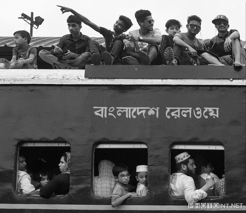 Q:拍摄的过程中,有什么难忘的故事或者拍摄感受,与我们分享的吗? A:拍摄过程中,的确与在国内的拍摄有所不同,特别是在火车站,如同我国的春运一样,人们思乡、归心似箭,依靠唯一的这种破旧、拥挤的绿皮火车,尽管车上座位有限,但他们可以站着,甚至在车顶上相拥而坐,什么天热、危险都不在话下,因为他们心中有梦,就是回家。这一点,不管是在国内还是国外,不分地域、不分国籍,都是一样的。  Q:对于一组纪实摄影题材的作品来说,如何从成千上万的照片中,挑选、编辑成一组作品,是非常重要的过程。您在这个过程中,做了哪些考虑?有遇到什么问题吗? A:说一点我个人的体会,摄影是在做减法。在完成一次拍摄活动后,要从中挑选、编辑出一组作品,的确考验一个摄影师对作品的解读功力。我在这次拍摄过程中也是遇到了很多问题,比如面对当地贫穷落后、拥挤不堪等现象,这在当地来说都是普遍现象,但是尽管这样,从老人、妇女、儿童的眼神中你可以看到,人们的内心是充实安定,甚至是幸福的。所以,我着重从他们的眼神中表现他们的内心世界,这也是我编辑这组照片时所着重考虑的。
