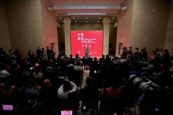 开幕式现场 此次展览意在将“中华意蕴——中国油画艺术国际巡展”(以下简称“巡展”)的展览情形向国内观众进行汇报,同时也作为2016中国国家画院年展油画院作品展向社会各界汇报。开幕式上,主持人中国国家画院油画院副院长张祖英介绍了“巡展”在法国巴黎布隆尼亚宫举行的盛况,同时,此次“巡展”的纪录短片也首次与观众见面。